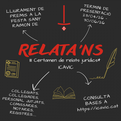 Us informem que la Comissió de Biblioteca de l’Il·lustre Col·legi d’Advocats de Vic organitza, dins dels actes de la diada de Sant Jordi, la primera edició del certamen de microrelats jurídics “Relata’ns”.